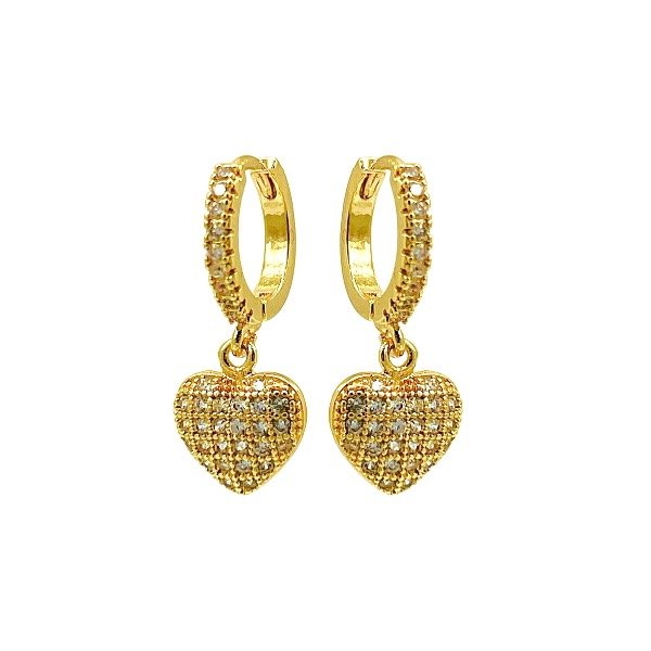 Argollas cubanas de acero dorado con brillo. Corazones cristal
