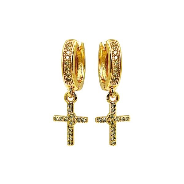 Argollas cubanas de acero dorado con brillo. Cruces cristal