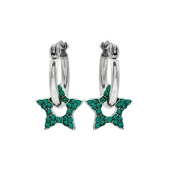 Argollas de acero quirúrgico - Brillo - Estrella pasante verde