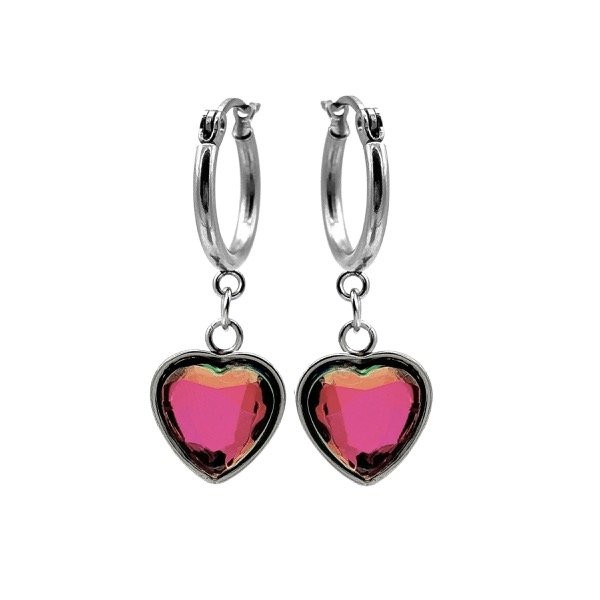 Argollas de acero quirúrgico con dije - 1.2cm - Corazón tornasol