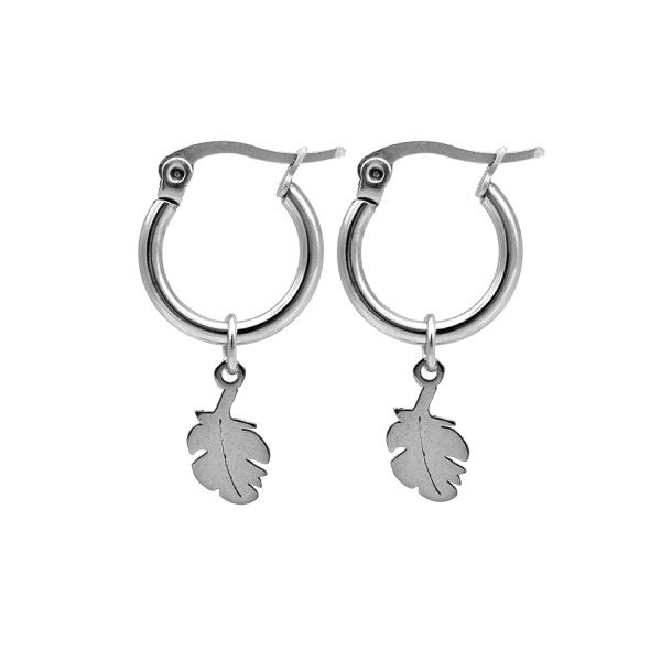 Argollitas de acero quirúrgico con dije - Hojas chicas -1.5cm