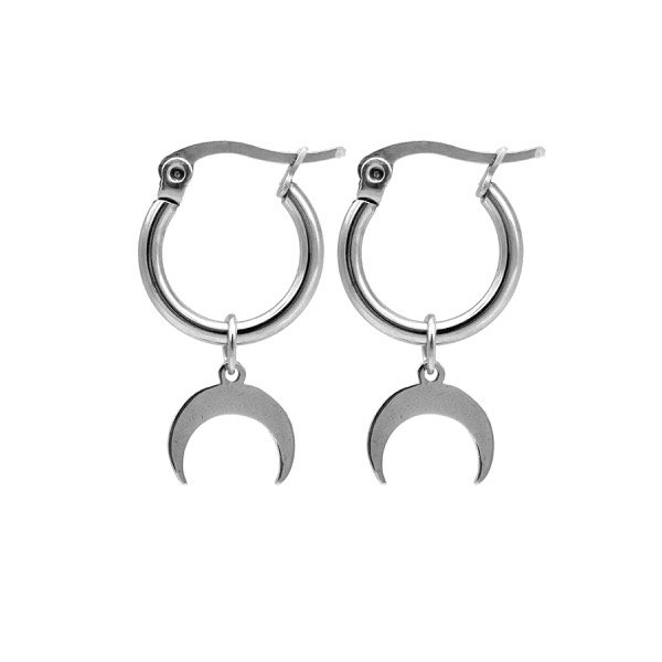 Argollitas de acero quirúrgico con dije - Luna invertida - 1.5cm