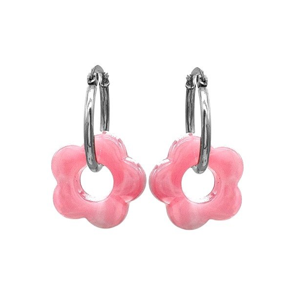 Aros argolla de acero quirúrgico - 2cm - Flor pasante - Rosa