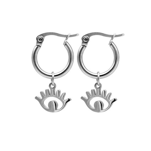 Aros argolla de acero quirúrgico con dije - 1.5cm - Ojitos