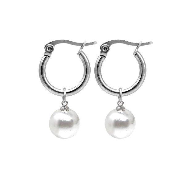 Aros argolla de acero quirúrgico con dije - 1.5cm - Perlas