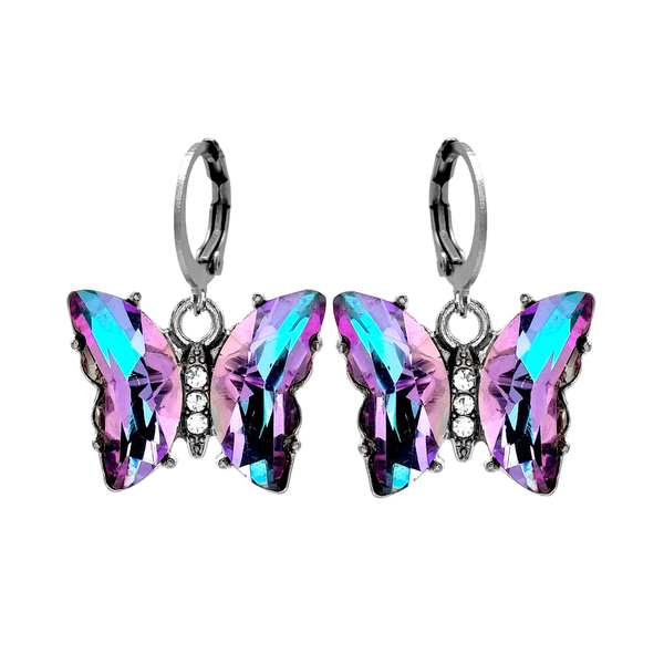 Aros de acero quirúrgico con dije - Mariposas - Lila tornasol