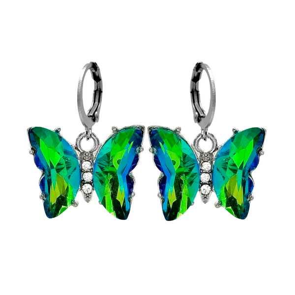 Aros de acero quirúrgico con dije - Mariposas - Verde