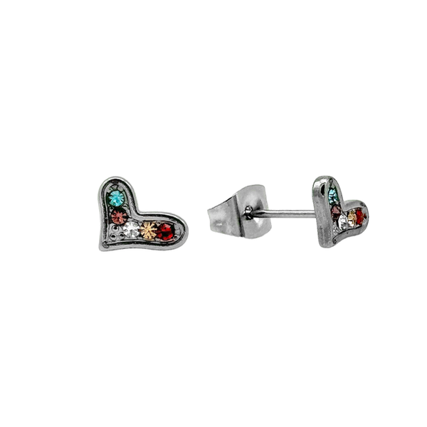 Aros miniatura de acero quirúrgico - Corazones con brillo multicolor - 8mm