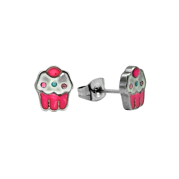 Aros miniatura de acero quirúrgico - Cupcakes - Varios colores