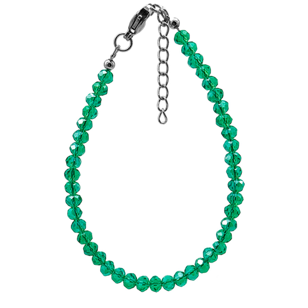 Pulsera de cristal checo y acero quirúrgico - Verde esmeralda - 4mm