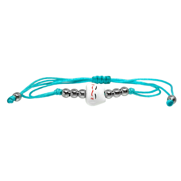 Pulsera de hilo y acero quirúrgico - Aqua - Gatito de ceramica blanco