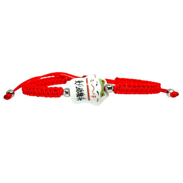 Pulsera de hilo y acero quirúrgico - Rojo - Gatito de ceramica verde