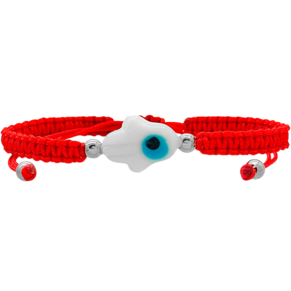 Pulsera de hilo y acero quirúrgico - Rojo - Manito ceramica blanca