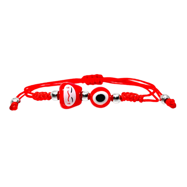 Pulsera de hilo y acero quirúrgico - Rojo - Ojito - Gatito de ceramica rojo