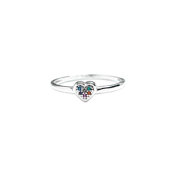 Anillo de Plata 925 - Corazón micropave Multicolor